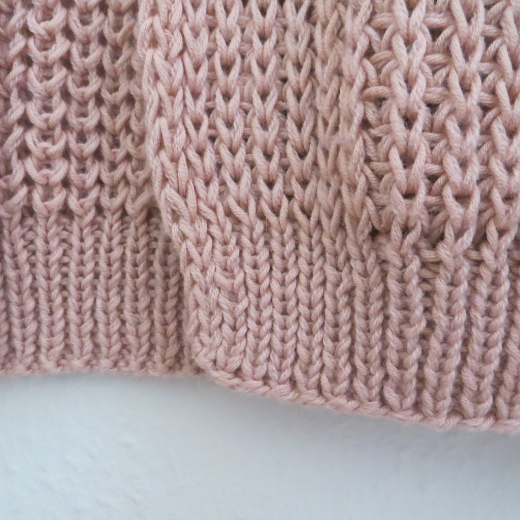 Die Jacke habe ich im Halbpatent mit Umschlägen gestrickt. Es gibt auch die Möglichkeit mit tiefergestochenen Maschen das Halbpatent zu stricken, aber optisch finde ich die Variante mit Umschlägen schöner.