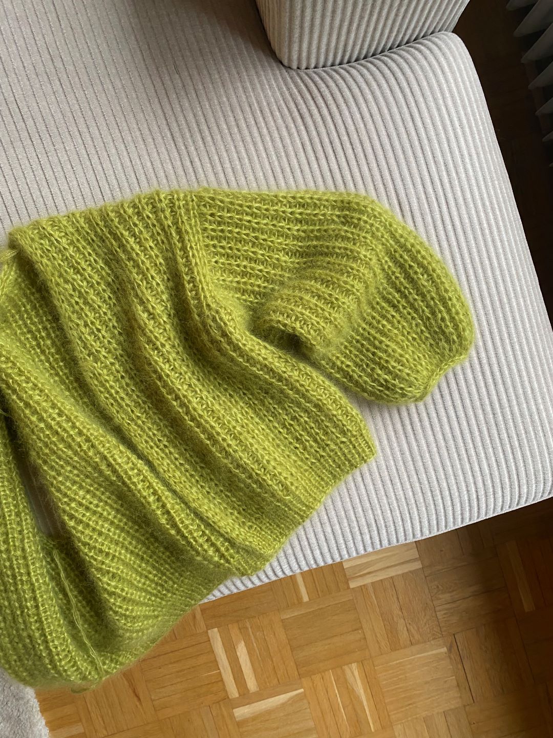 Modell 1 (Garnvorschlag 1) aus 4 Fäden ”Pearl Mohair” (210m/25g) in Pistachio von Majo Garn
