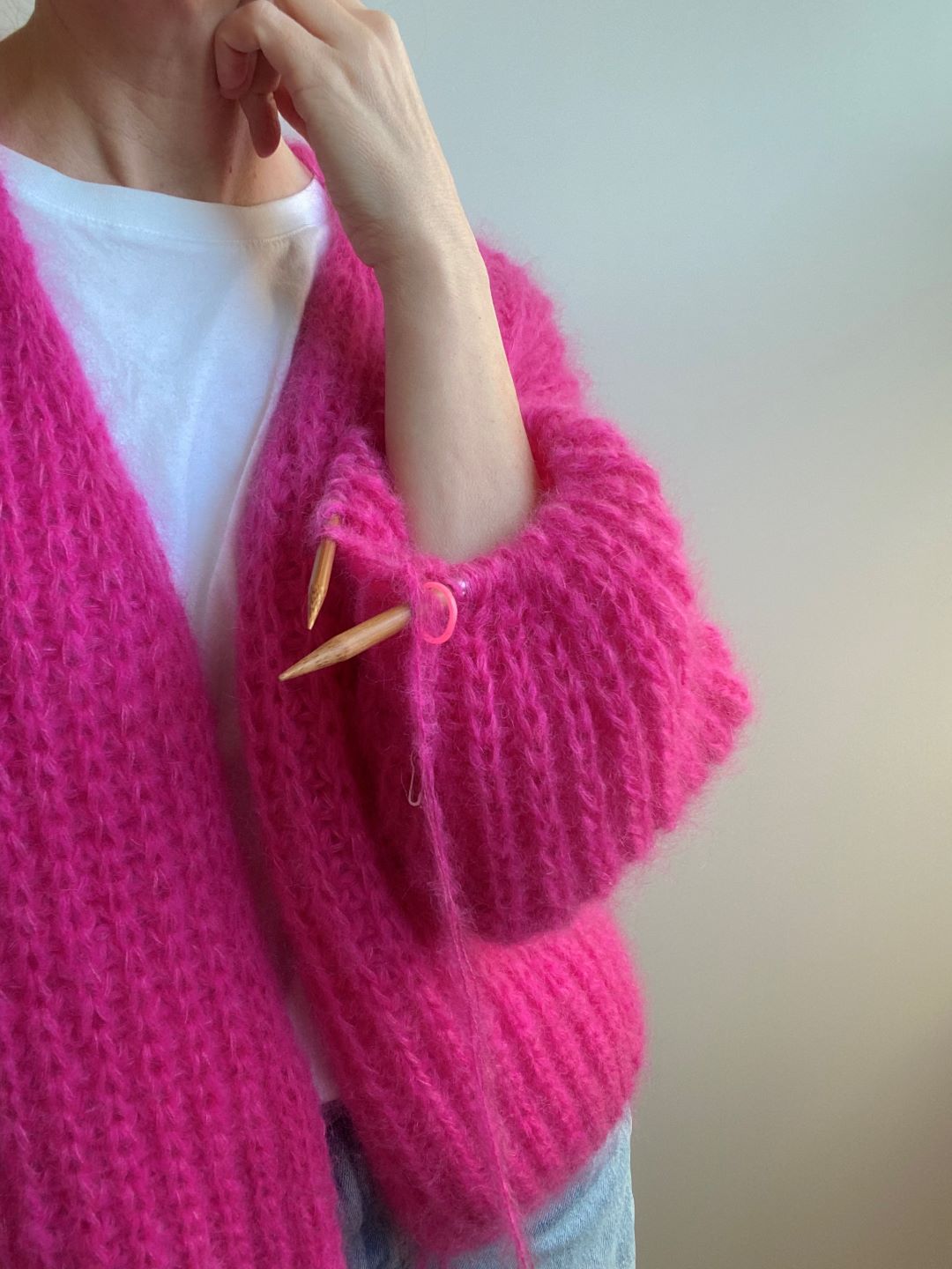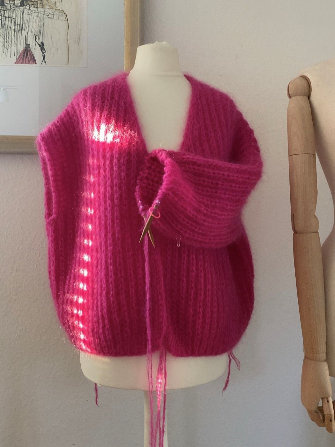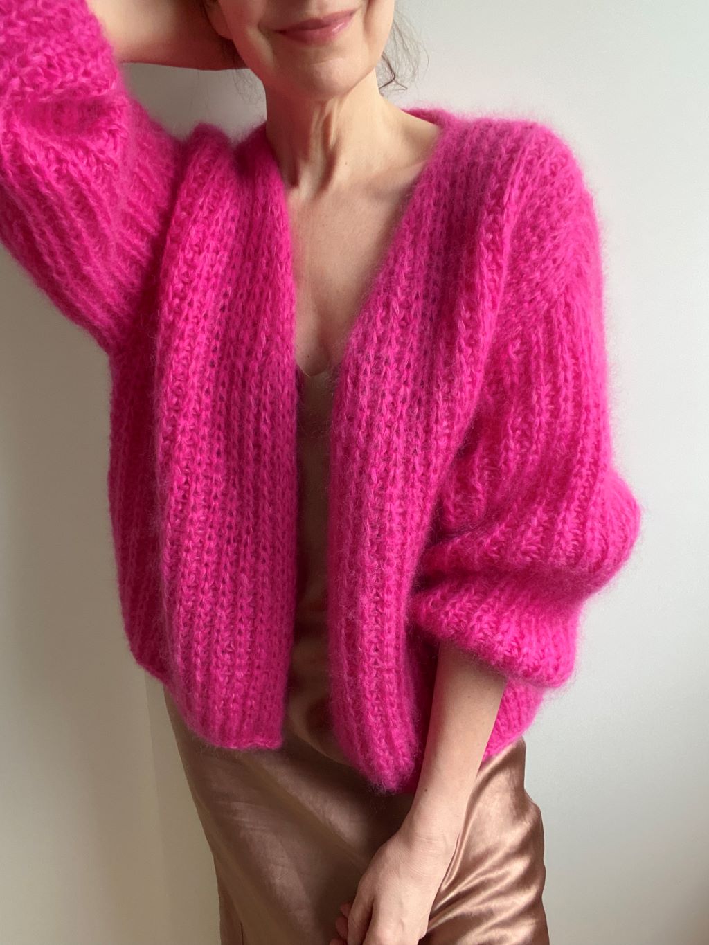 Modell 2 (Garnvorschlag 3) aus 1 Faden ”Suri Alpaca” (100m/25g) in Pink 65 von Lang Yarns zusammen mit 2 Fäden ”Mohair Luxe” (175m/25g) in pink 66 von Lang Yarns